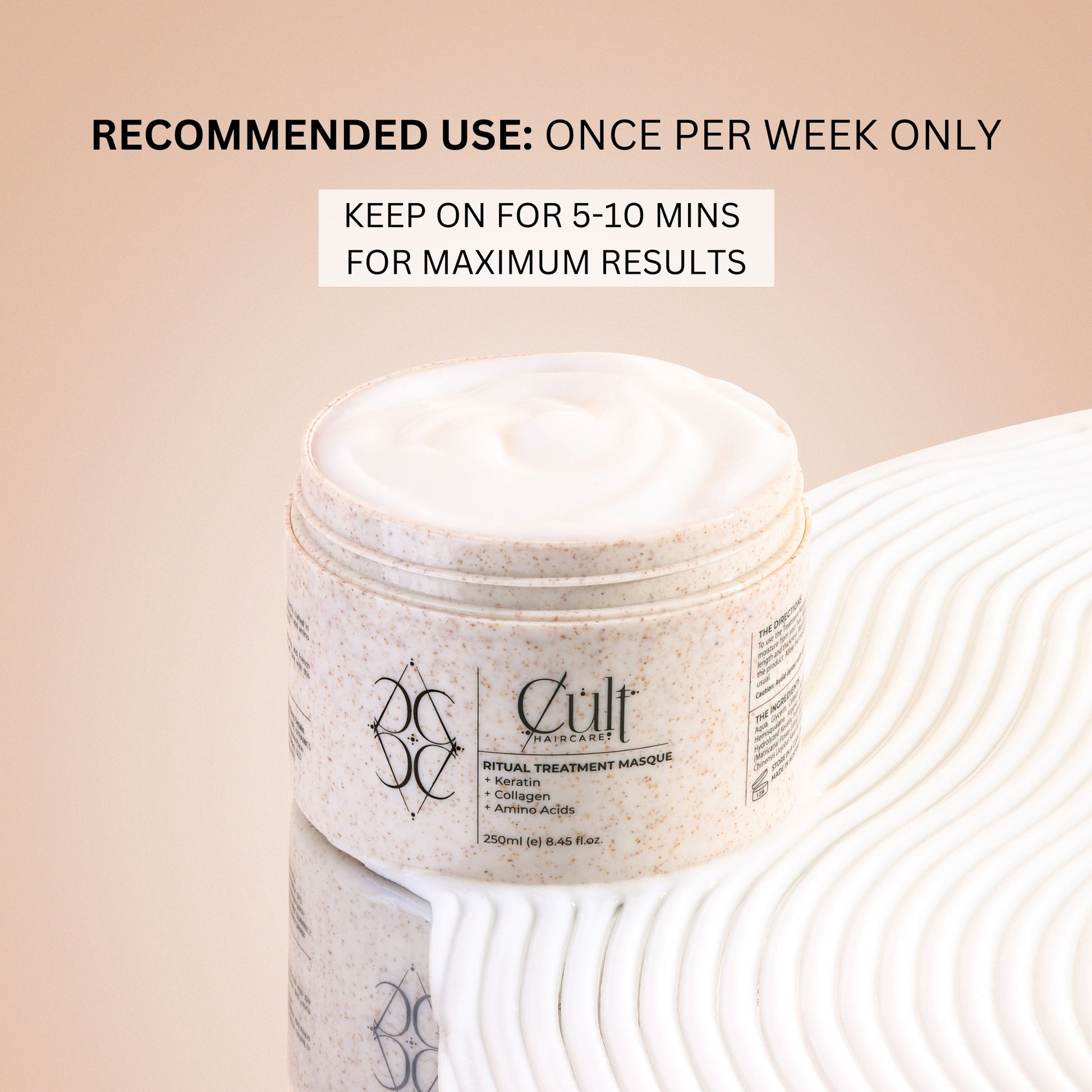 Backed by over 20 years of professional salon expertise, CULT’s Ritual Treatment Masque fuses Keratin, Collagen, and Amino Acids into a single powerhouse formula that rebuilds, restores, and revives tired, damaged hair from within.